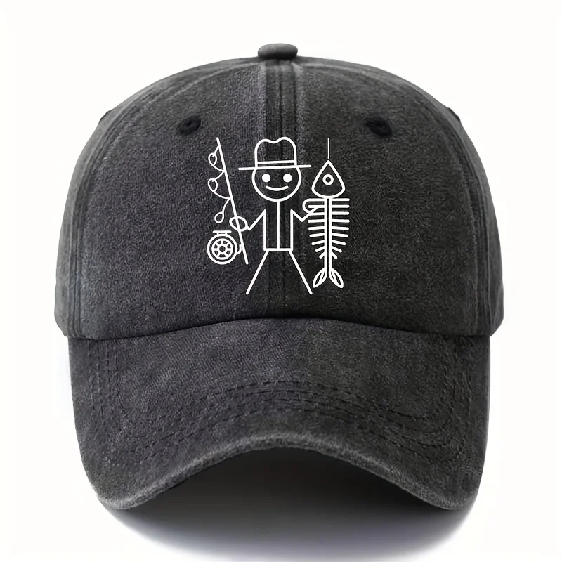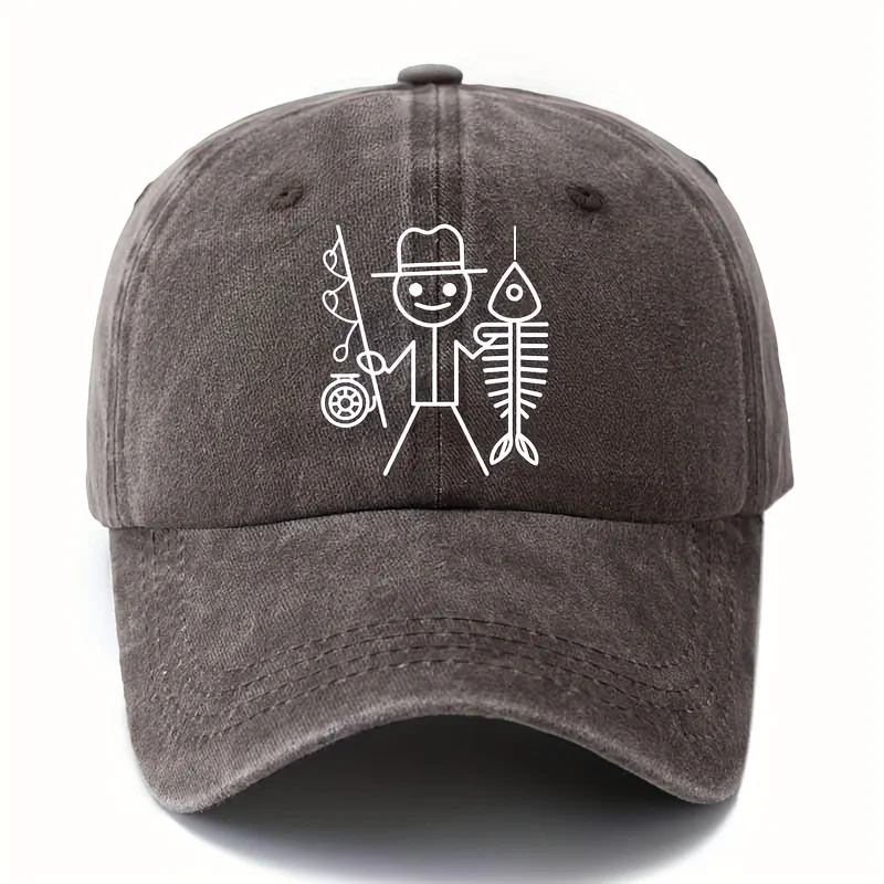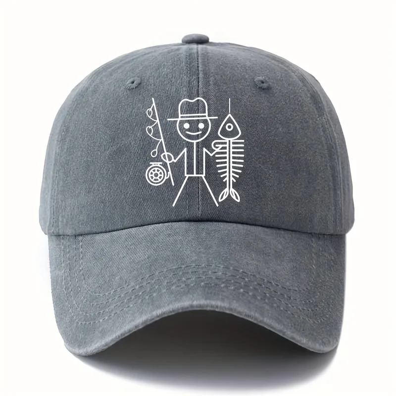 Funny cartoon man fishing cap