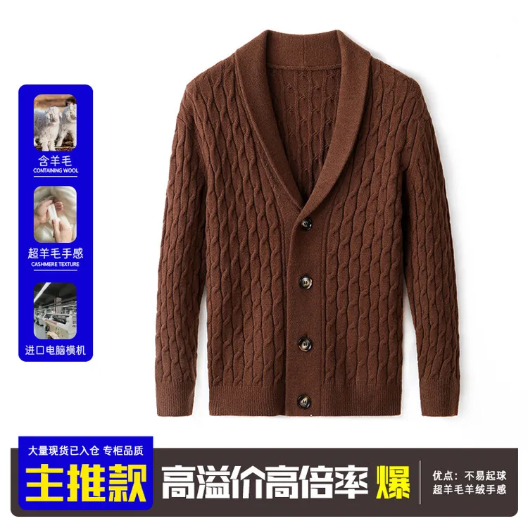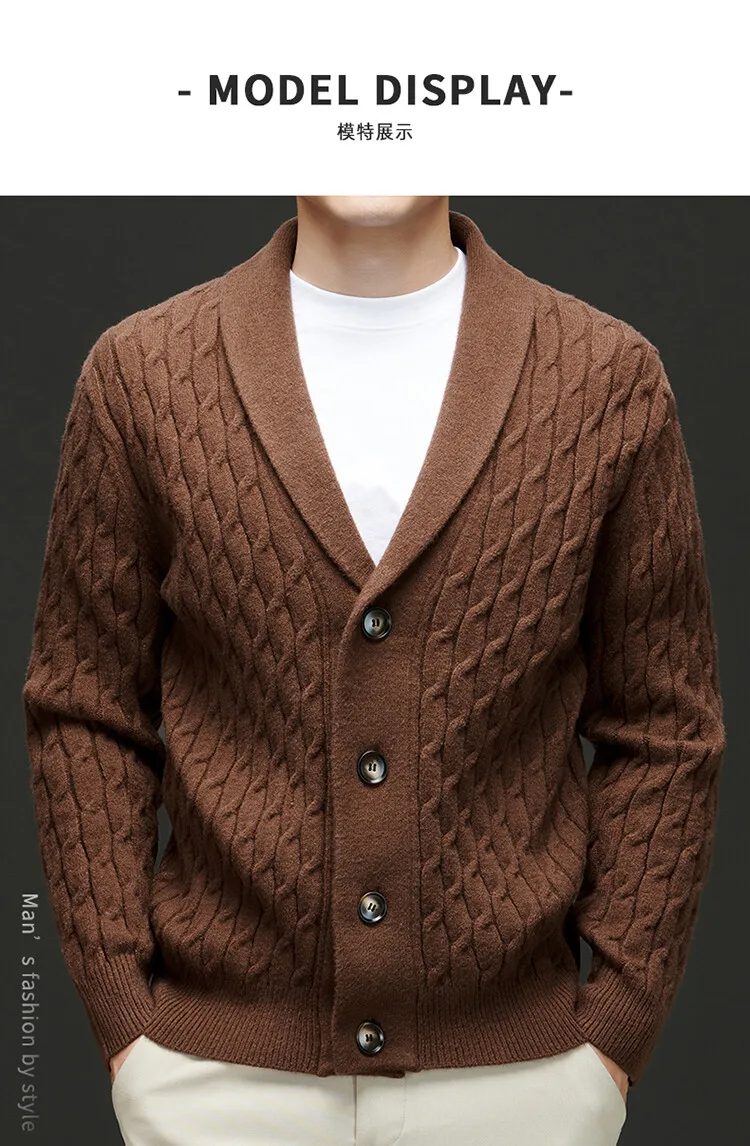 High-quality V-neck men's cardigan - Fishing